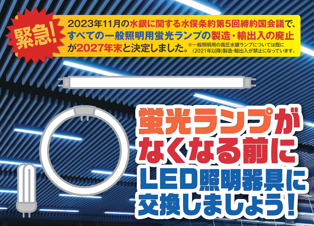 2027年末に全ての一般照明用蛍光ランプ(蛍光灯)の
