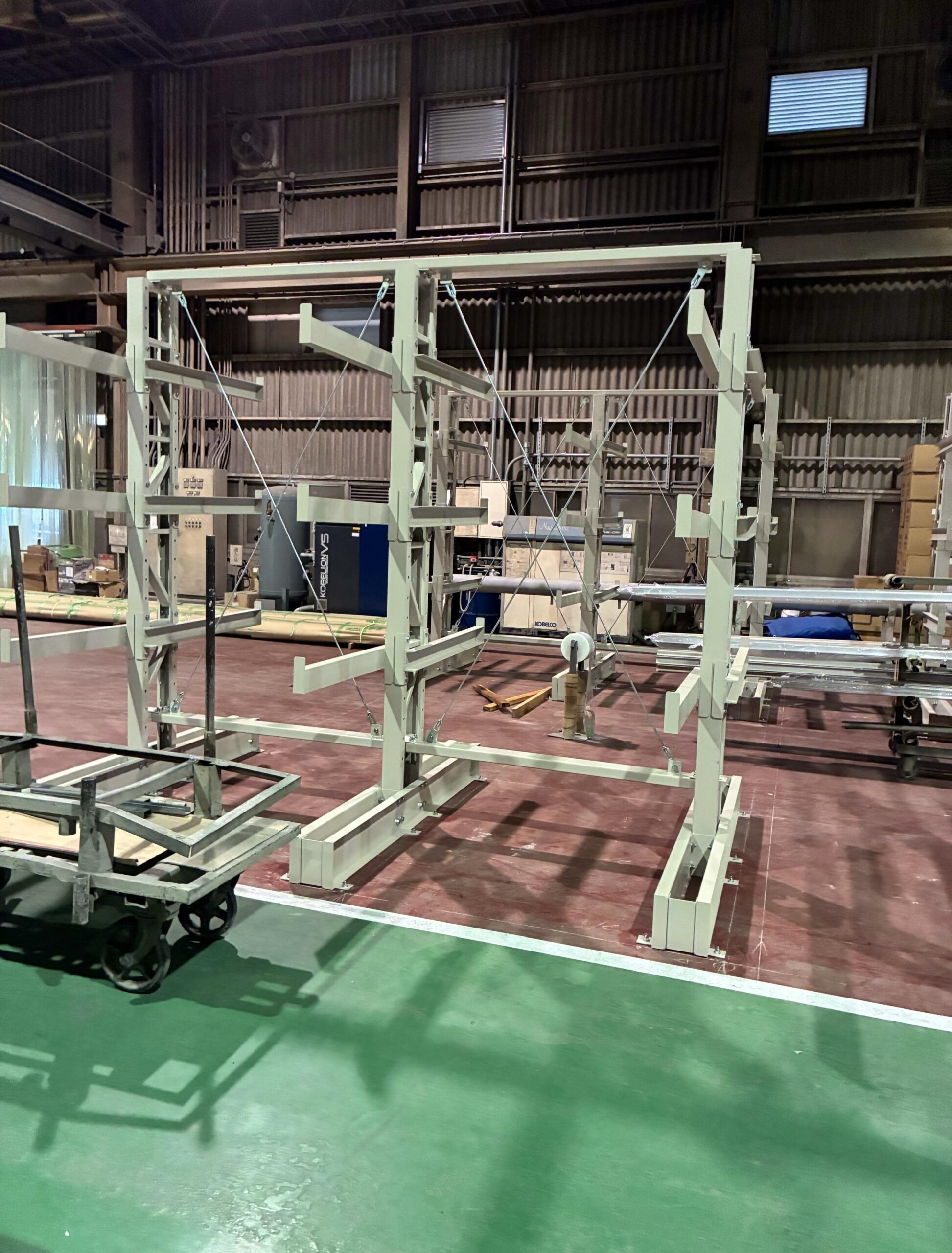 部材類を保管するパレットラックの設置工事を行いました。