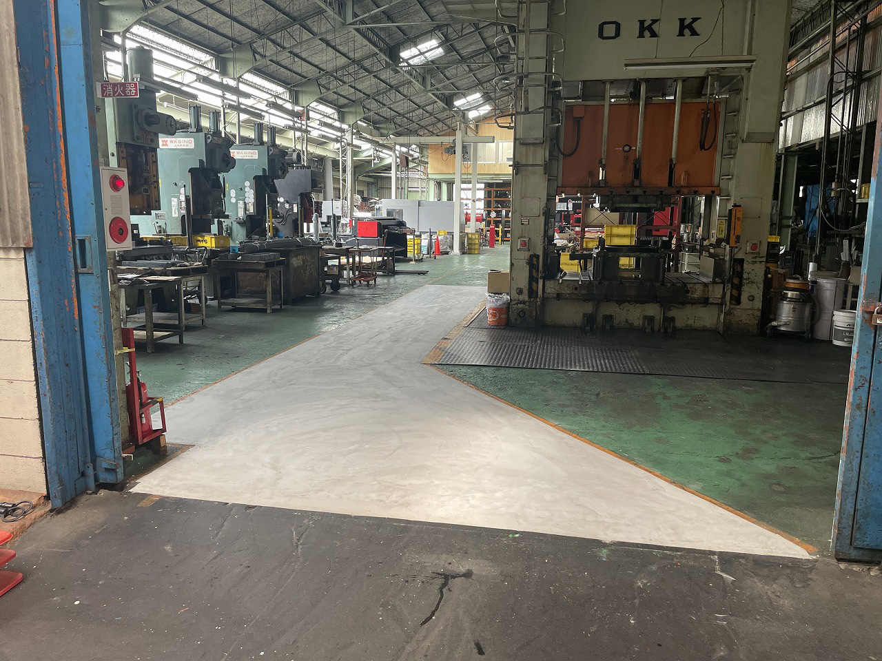 工場内の床の段差や凹凸を無くし、土間を新設する修繕する工事を行いました。