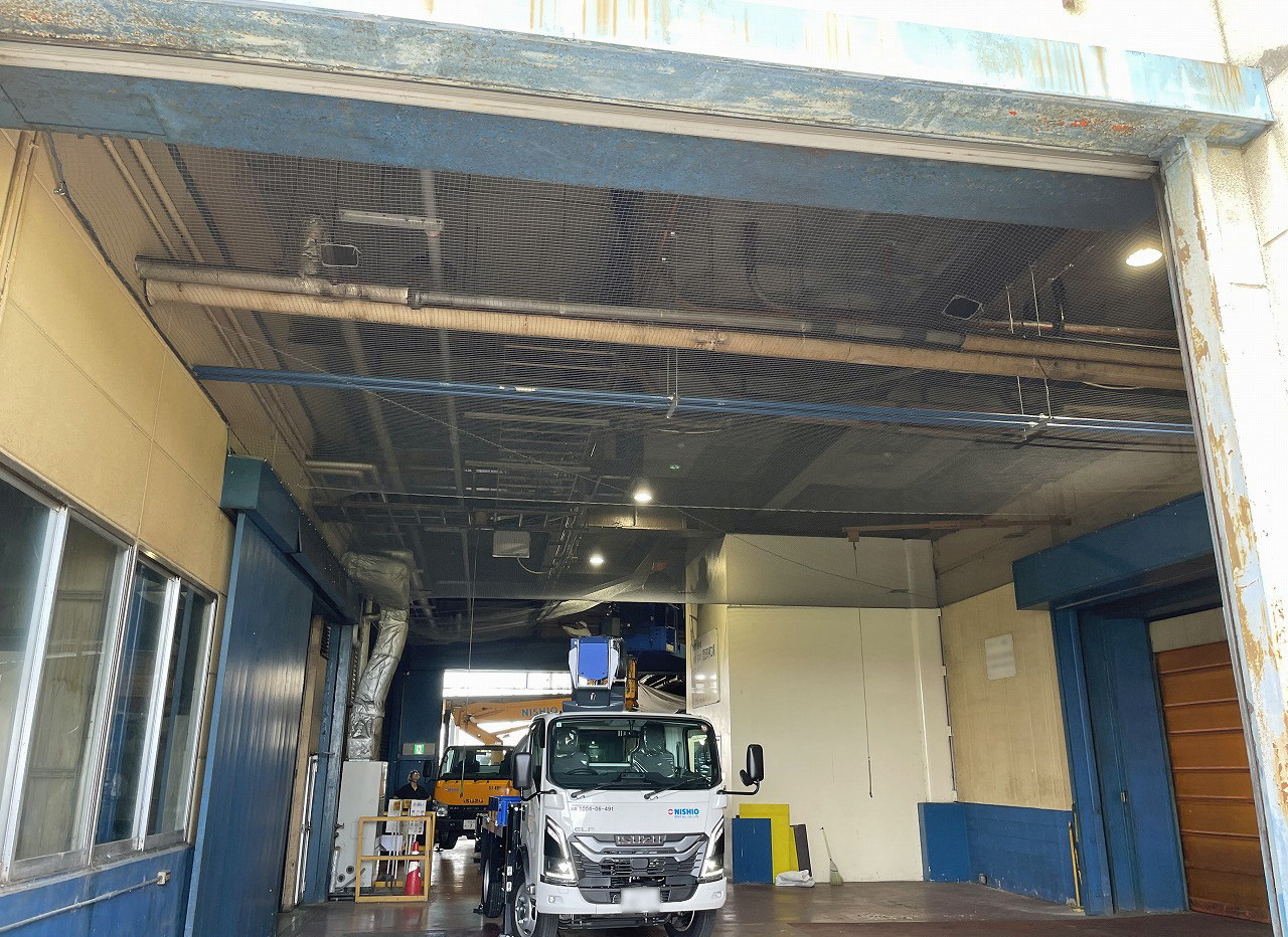 作業場に鳩が侵入しないよう防鳥網を取り付ける対策工事を行いました。