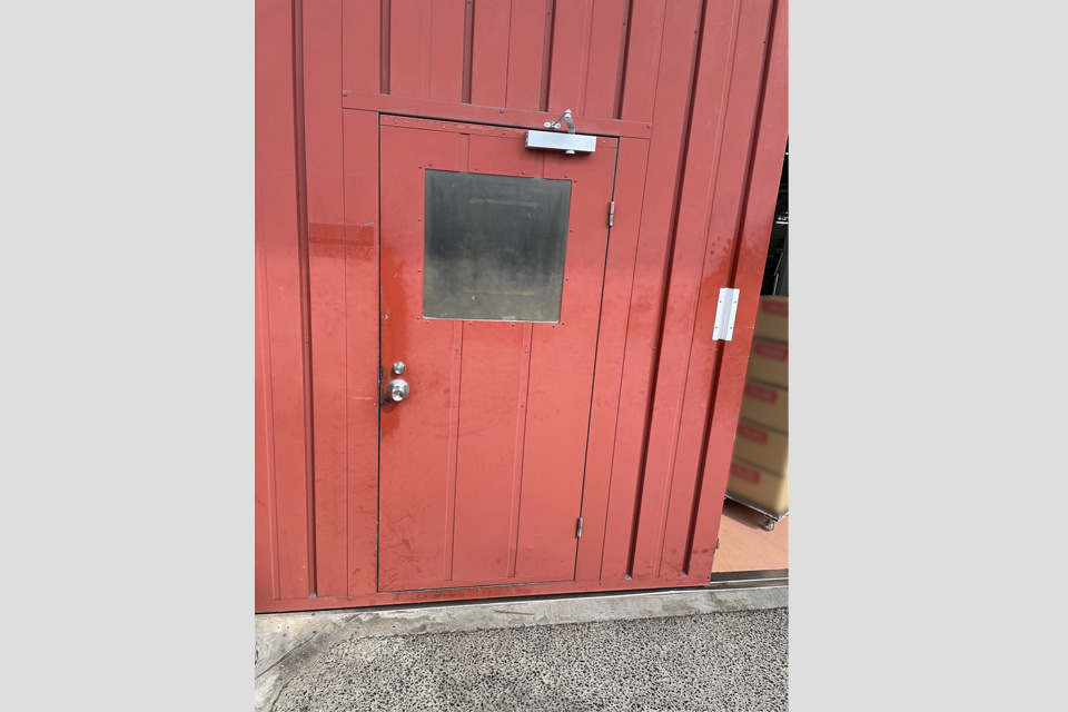 工場のくぐり戸にドアクローザーを取り付ける工事を行いました。